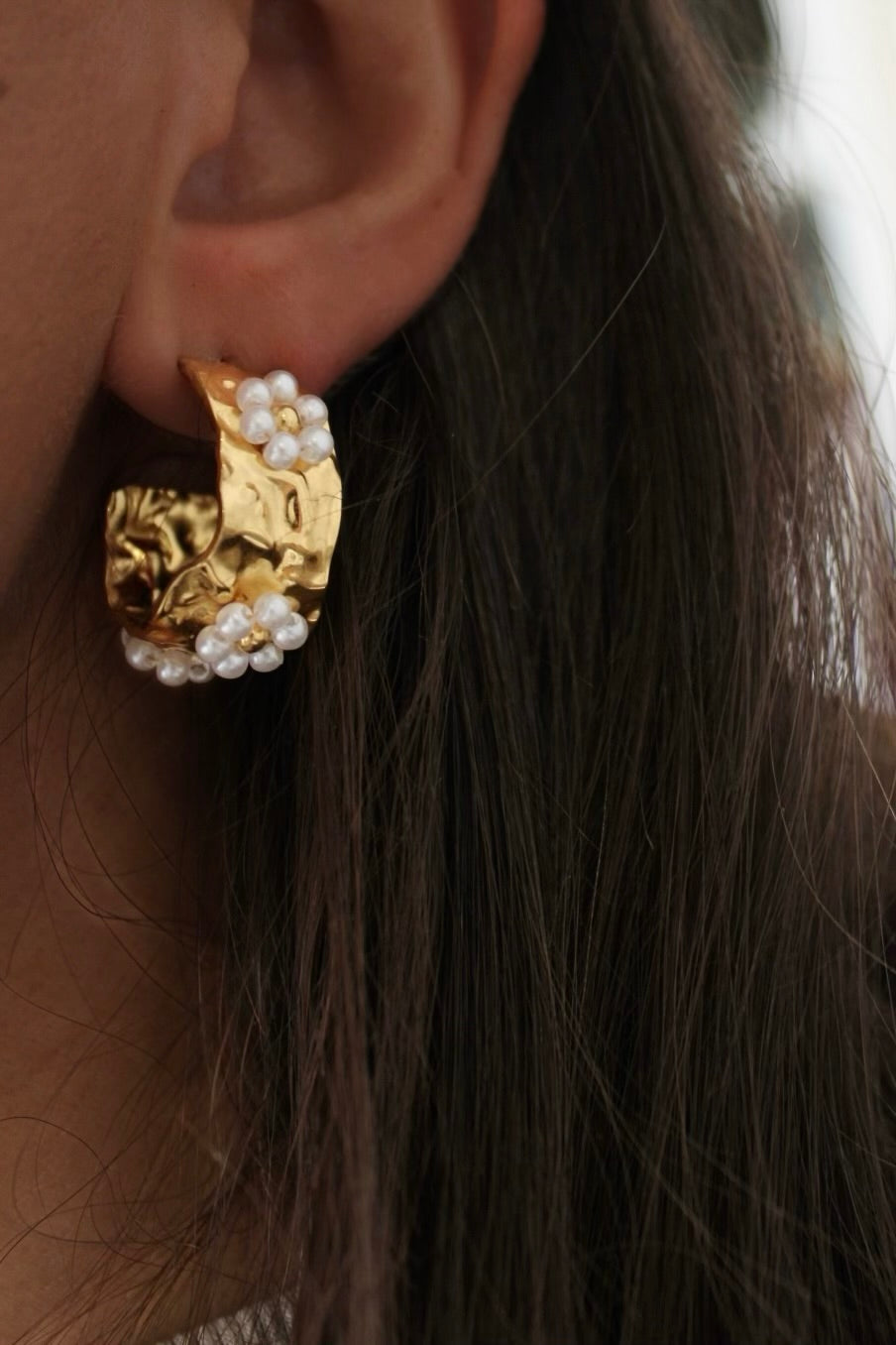 Hammered Earrings with Pearls
