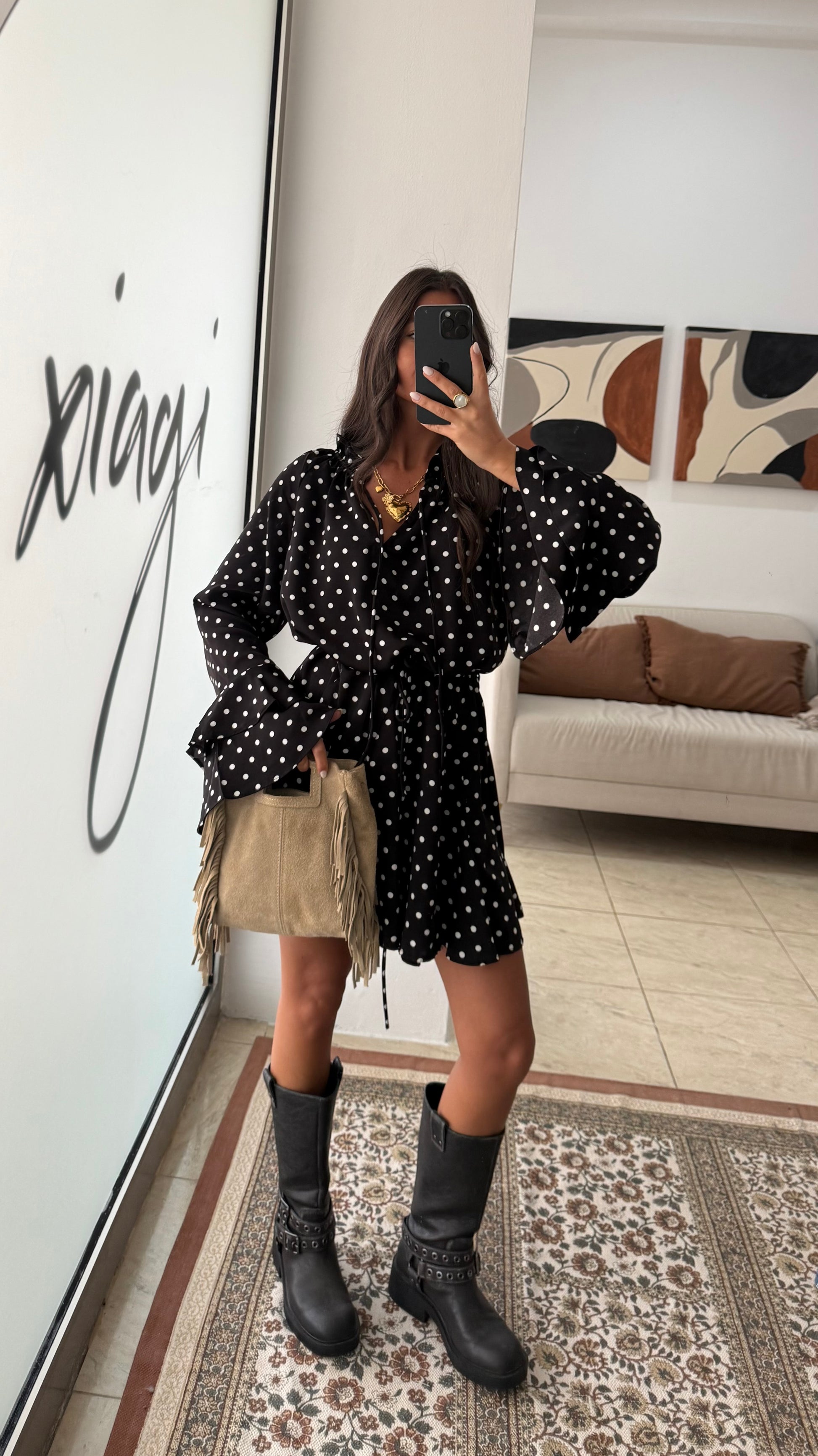 Black Polka Dot Ruffle Dress