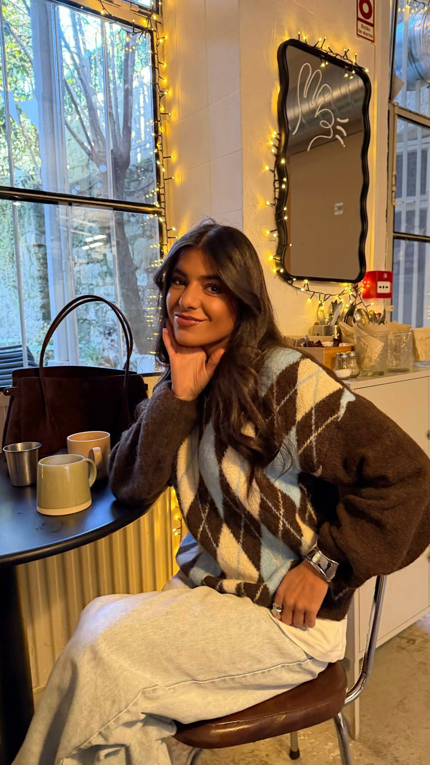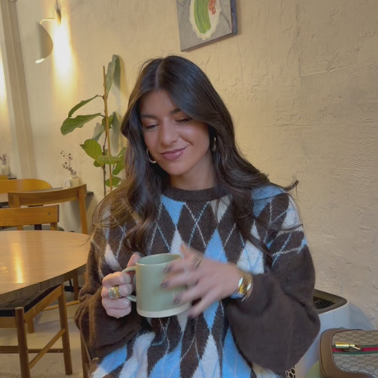 Brown & Sky Blue Argyle Knit Sweater