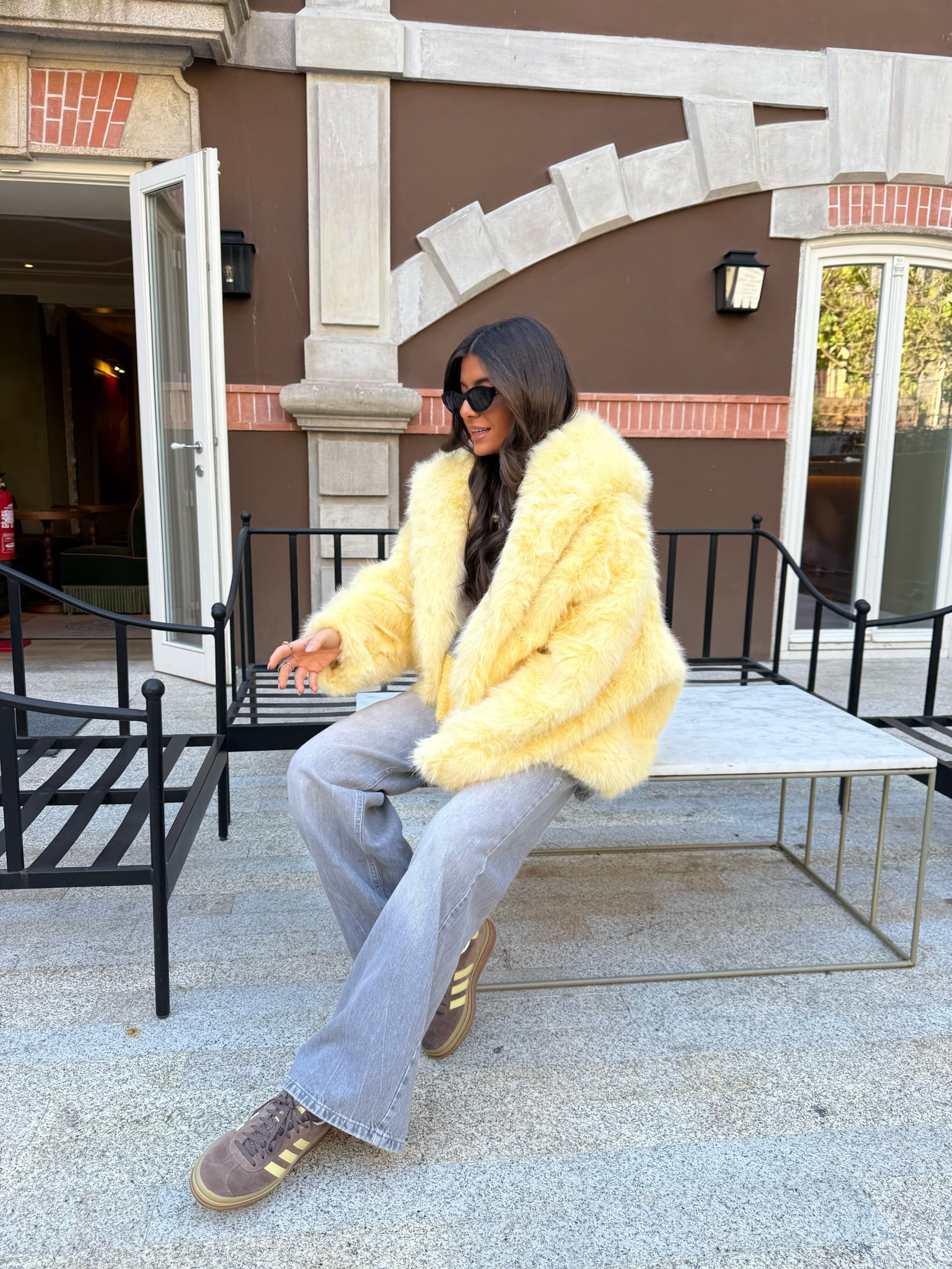 Butter Yellow Faux Fur Hoodie Jacket