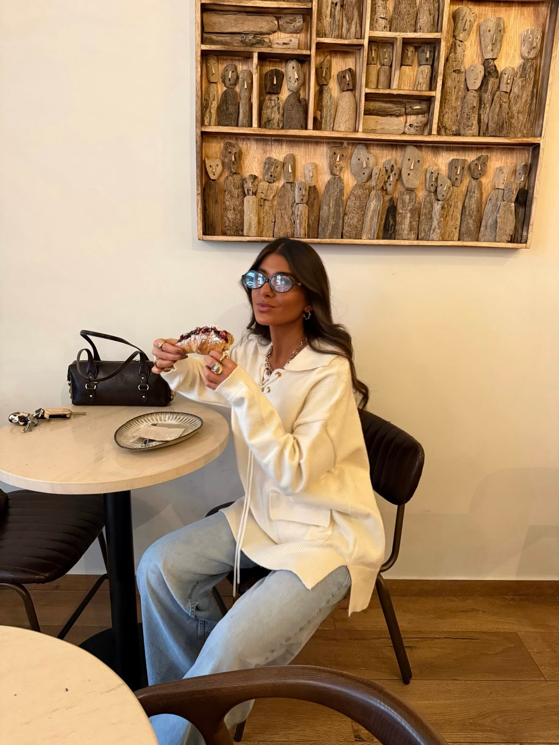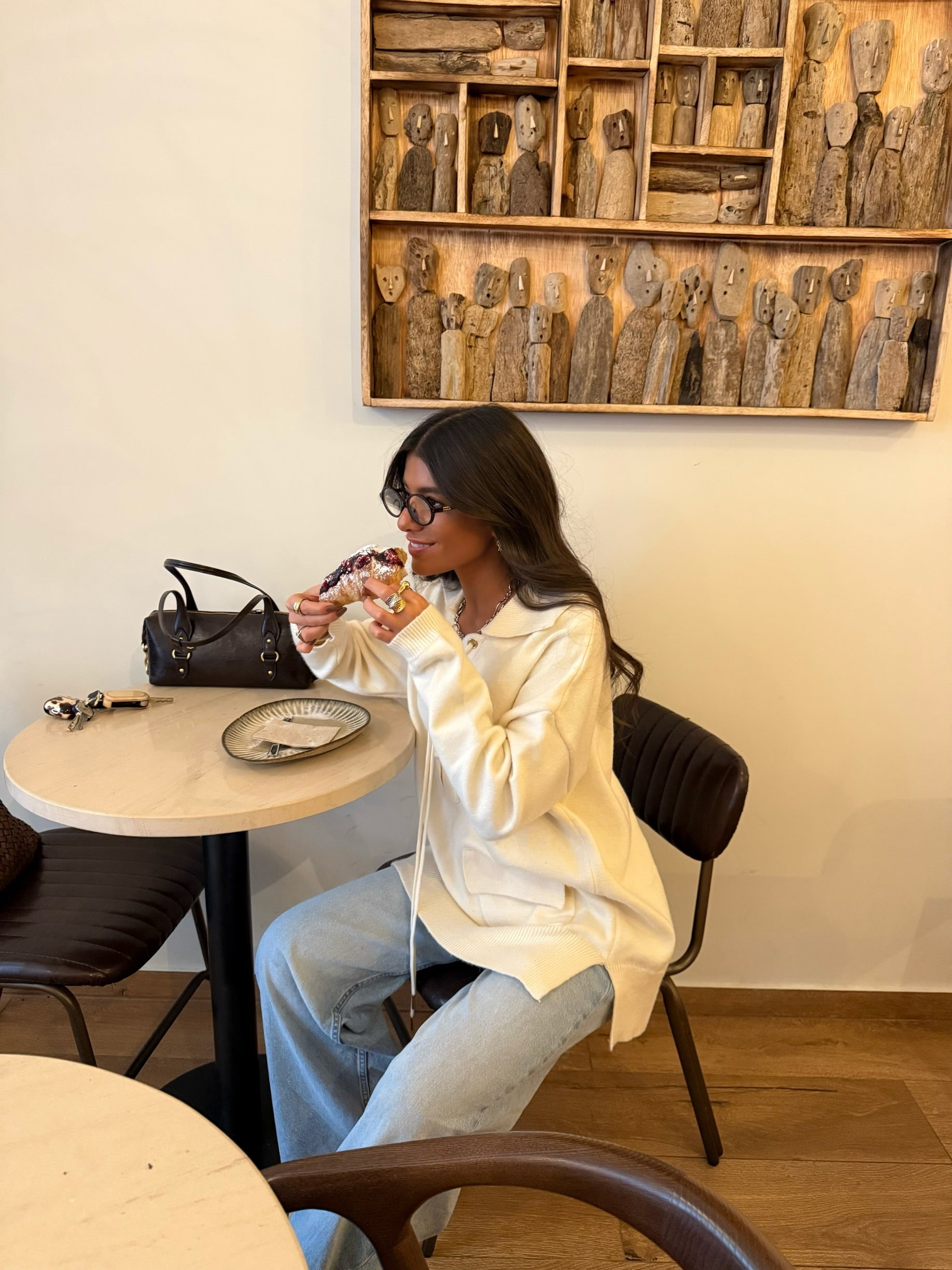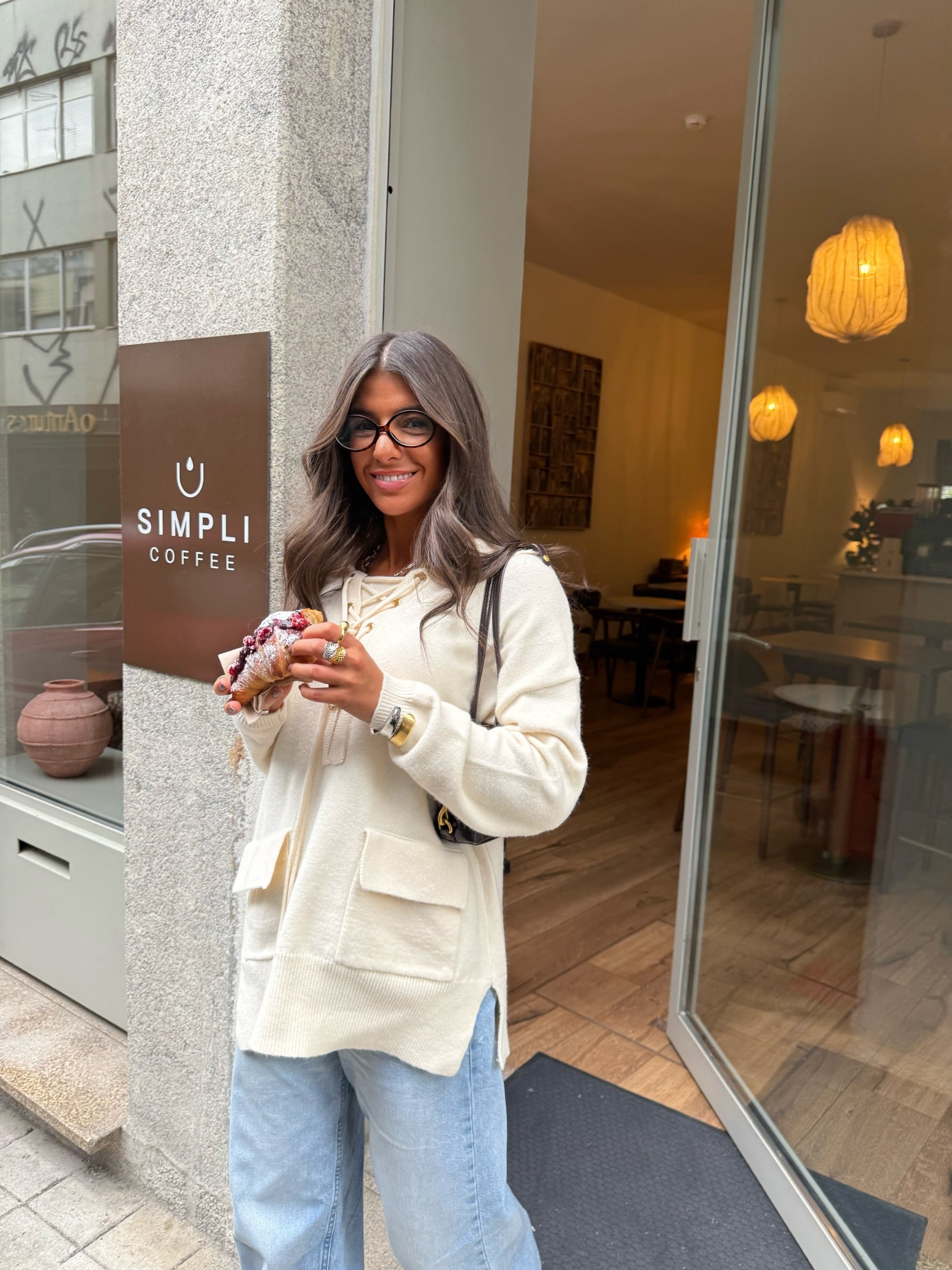 Ecru Knit Hoodie with Lace-Up Detail