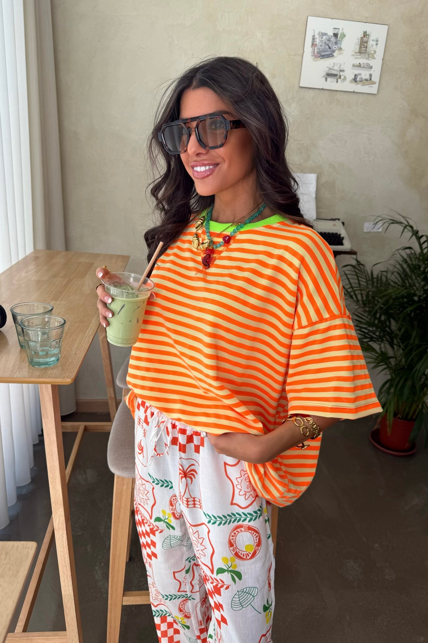 Fluorescent Striped T-Shirt: Yellow, Orange & a Touch of Green