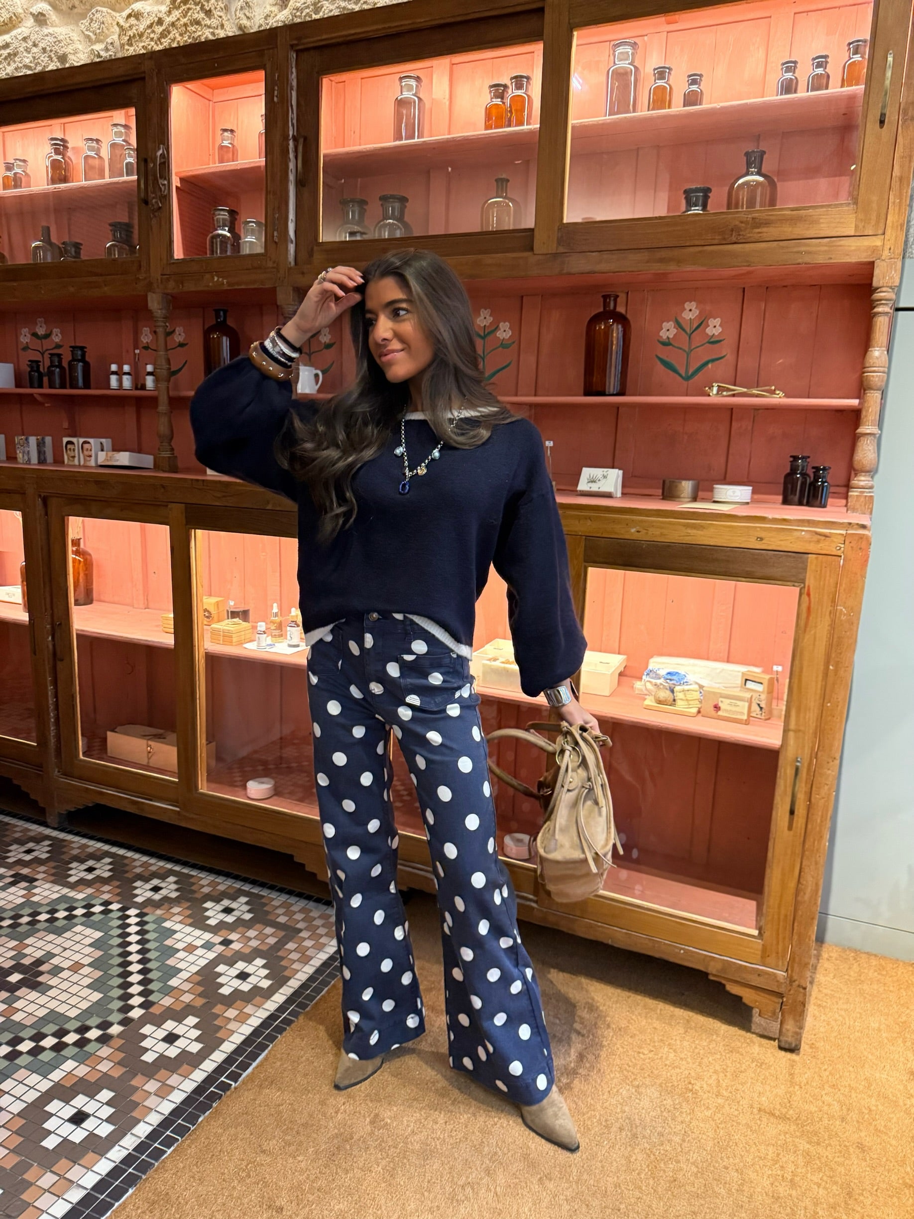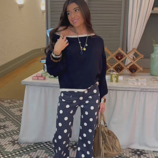 Navy Off-Shoulder Mohair Sweater