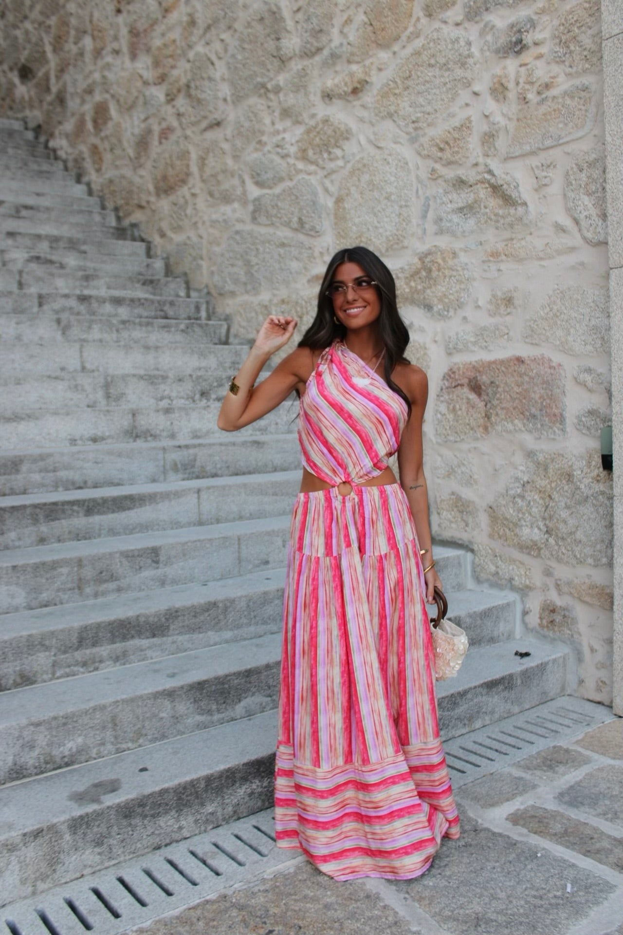 Long Rose-Toned Dress with Cut-Out Detail hi