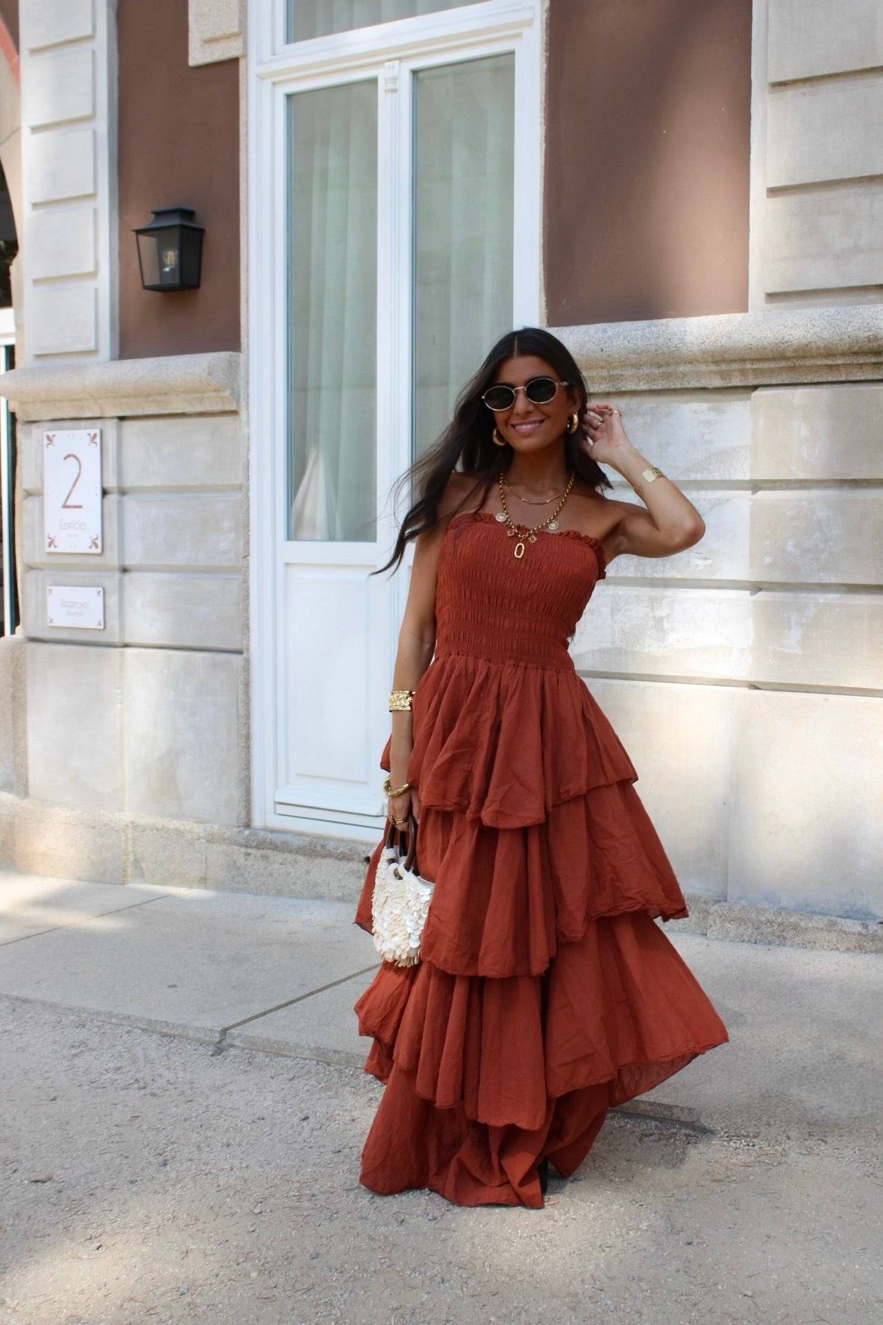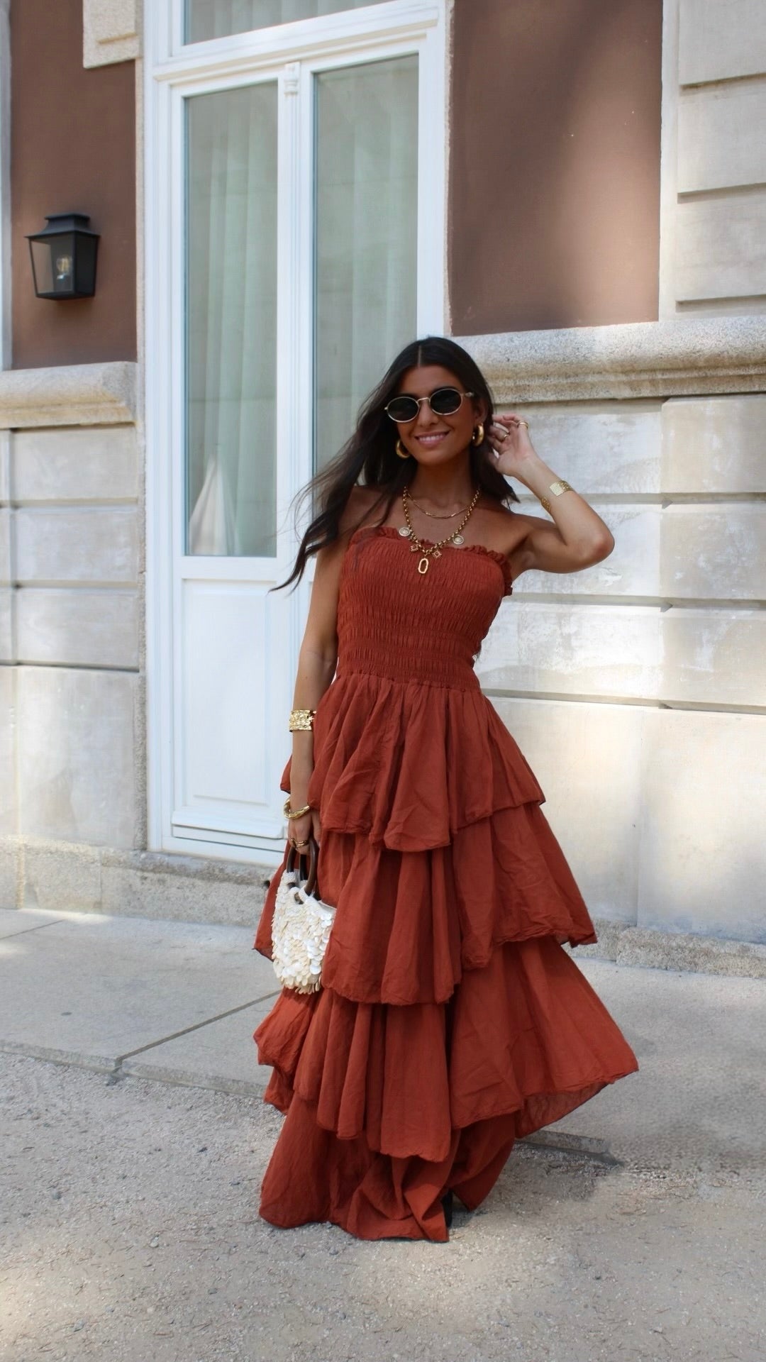 Dark Terracotta Tiered Maxi Dress
