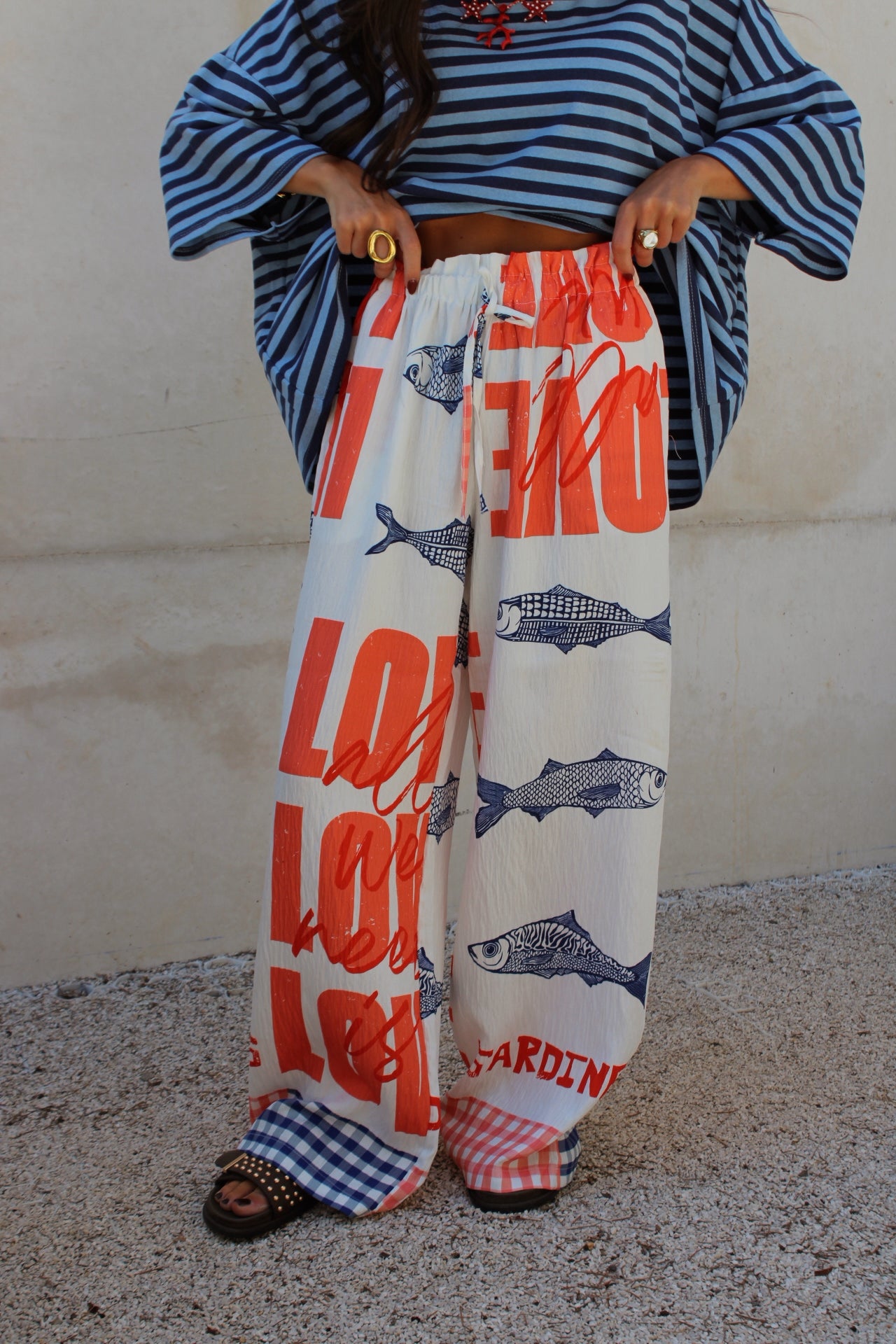Sardine Print Flowy Pants