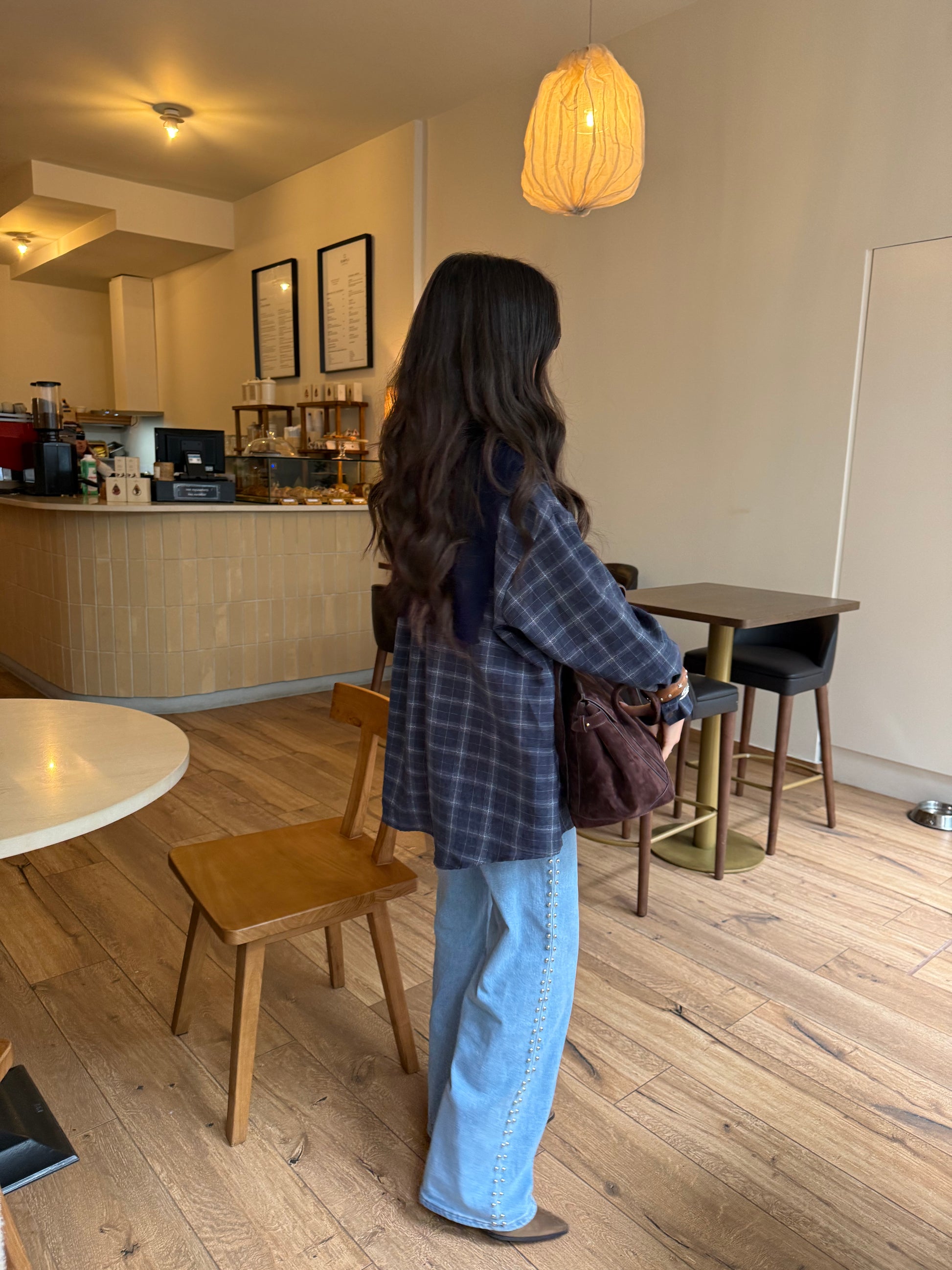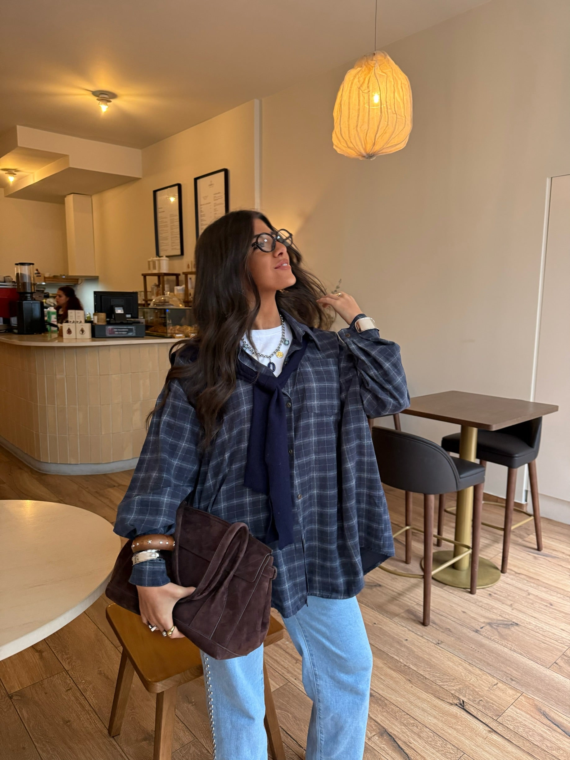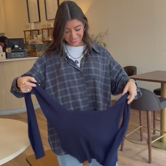 Shirt with a peach-skin soft touch, full satin lining, and an integrated knit panel on the back for a layered look
